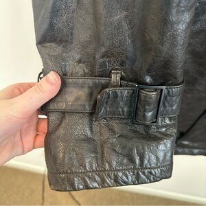 Excellent used condition leather jacket. Soft, warn in leather. Button front. No size tag, please view measurements.