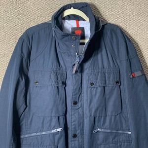 Strellson Mens Jacket Size 56 Blue Master-W Snap Full Zip Hooded Pockets Outdoor