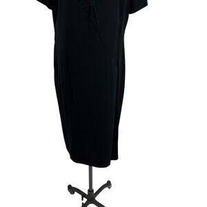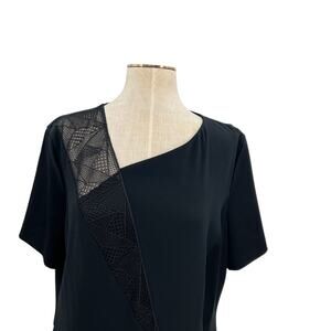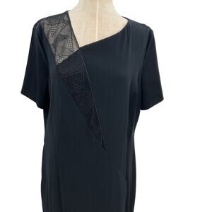 Strenesse Dress Sheath Short Sleeve Asymmetric Neck Lace Black Size US 12