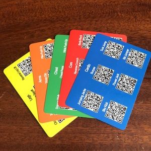 Workout dice with cards with scanner to demo exercise