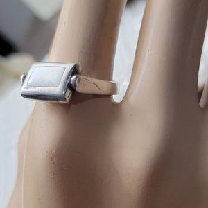 Stress Relief Anxious Ring Spinner Luster Shell Mother of Pearl Articulated Design 1/2" x 3/8" Vintage Size 8 made on sterling
