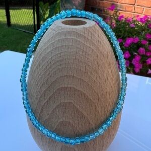 Stretch beaded anklet in a gorgeous turquoise luster light blue glass beads