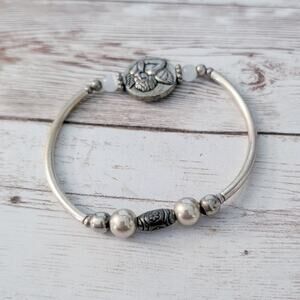 Preowned bracelet, sold as shown - I am unsure of material type(s) because of this. Pictures show different angles for you to review - while I attempt to note any defects, some tarnish/signs of wear may be visible that are not otherwise stated.