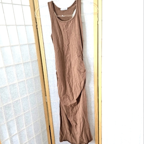 Syretch Cotton Racer Back Ruched Midi dress Dark Tan/Brown. Ruching on sides comfortable small. could fit s/m/l