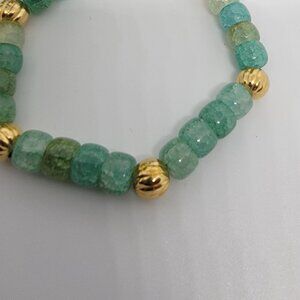 Stretch Czech Green Glass and Gold Beaded Bracelet - Handmade