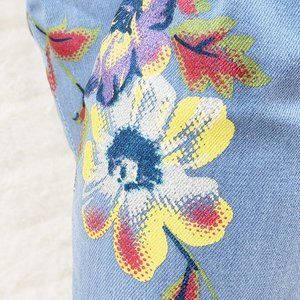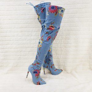 Stretch Floral Print Denim Draw String Top high heel thigh boots