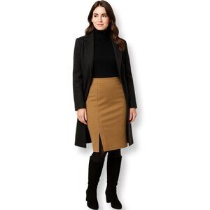 Stretch Knit Pull on Pencil Skirt in Camel Tan Career Midi Small