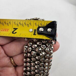 Statement bracelet with a bold metallic texture design. Stretchable for easy wear and adjustable fit, ideal for accessorizing various outfits.