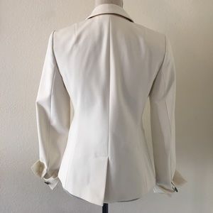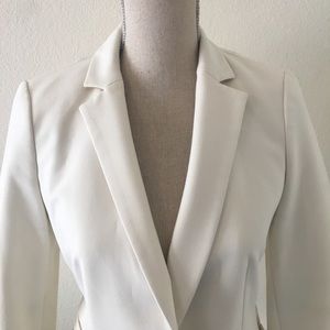 Stretch off white Single Button Blazer with patch pockets. Fully lined. Single vent.