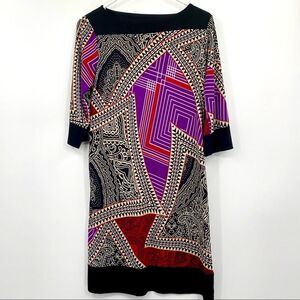 T a g s • retro print mini dress geometric Work career office business preppy professional dressy casual flowy tunic dress