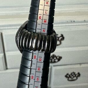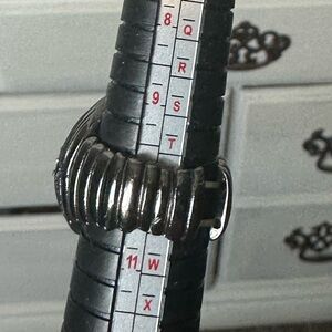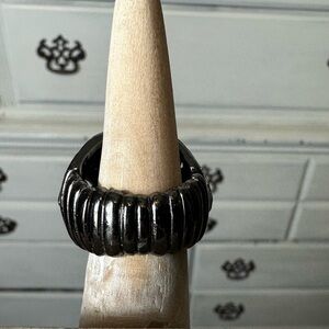 Stretch Statement Ring. This stunning statement ring features a bold design with shimmering silver and black accents. Perfect for adding a touch of elegance to any outfit. Band stretches a lot.