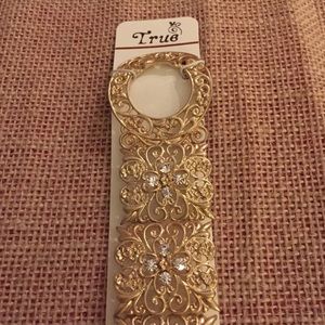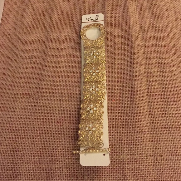 Gold stretch bangle bracelet with crystals