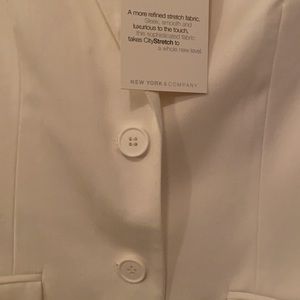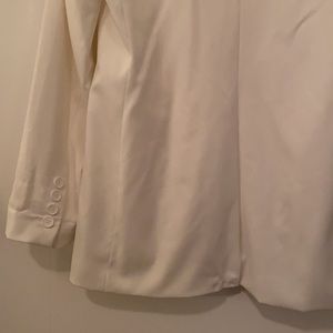 Two button blazer with buttons on cuffs. Slight stretch for ease of movement.
