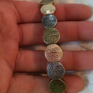 Gold, warm gold and silver bracelet. Looks good by itself or layered like in my first photo. New never worn but tags have been removed.
