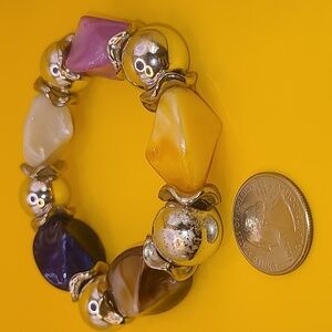 Stretch bracelet with silver tone beads and faux multicolored stones