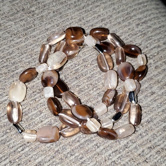 Stretch bracelet in shades of brown, tan and cream.