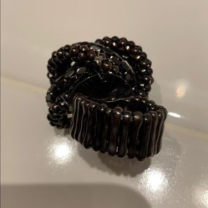Faux gray pearl stretch chain ring in black and bronze chain large.