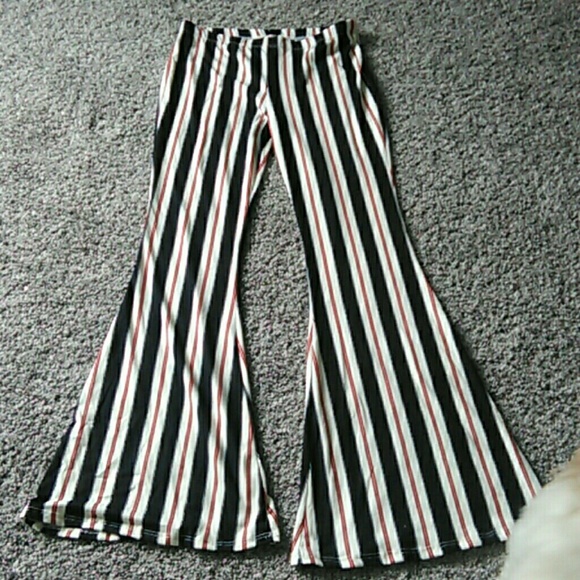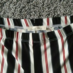 Navy and red strip stretch pants with flair leg