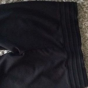Business attire, black stretch pants.