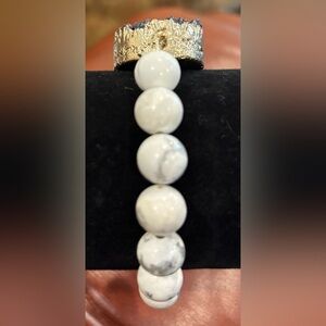 Stretchy Howlite Bracelet with Black Druzy Agate Charm