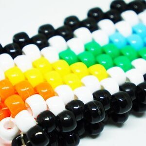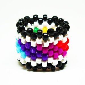 Stretchy Rainbow Kandi Cuff Beaded Handmade Bracelet with White and Black