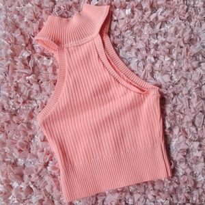 Sherbert orange stretchy top. Great for a casual day, concert or relaxing by the pool. Worn with love. 85% acrylic 15% spandex. Color is altered due to lighting.
