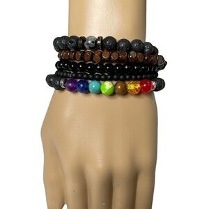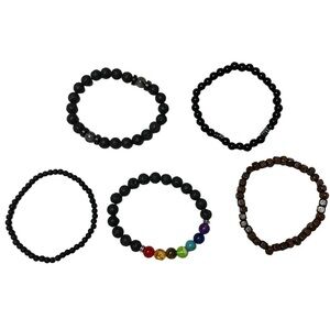 Set of 5 bracelets New without tags Stretchy Black brown and rainbow