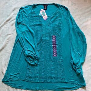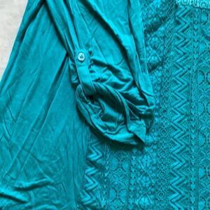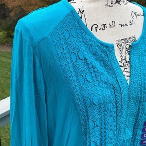 Such an awesome top to wear with your favorite leggings or jeans. Comfortable enough to get all those errands done around the house or all the shopping down at the mall. Stretchy and comfortable knit material. 22 inches pit to pit.21 inches long. V-neck with bibs style lace going down the front middle.