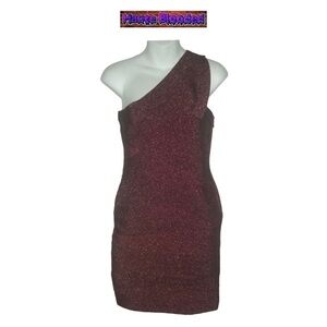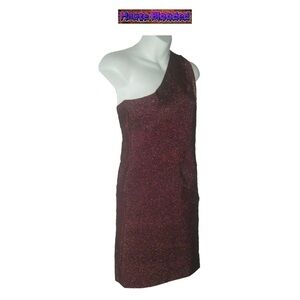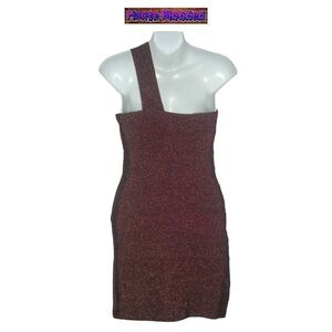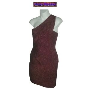 Stretta Kim Dress Burgundy Gold Metallic Stretchy Body Con Bandage Lurex Seen On