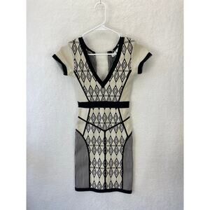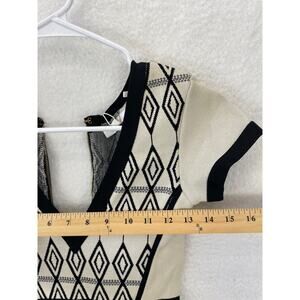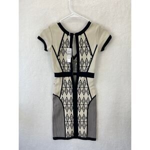 Stretta Mini Dress Women’s Size XS Beige Geometric Zip Short Sleeve Bodycon NWT