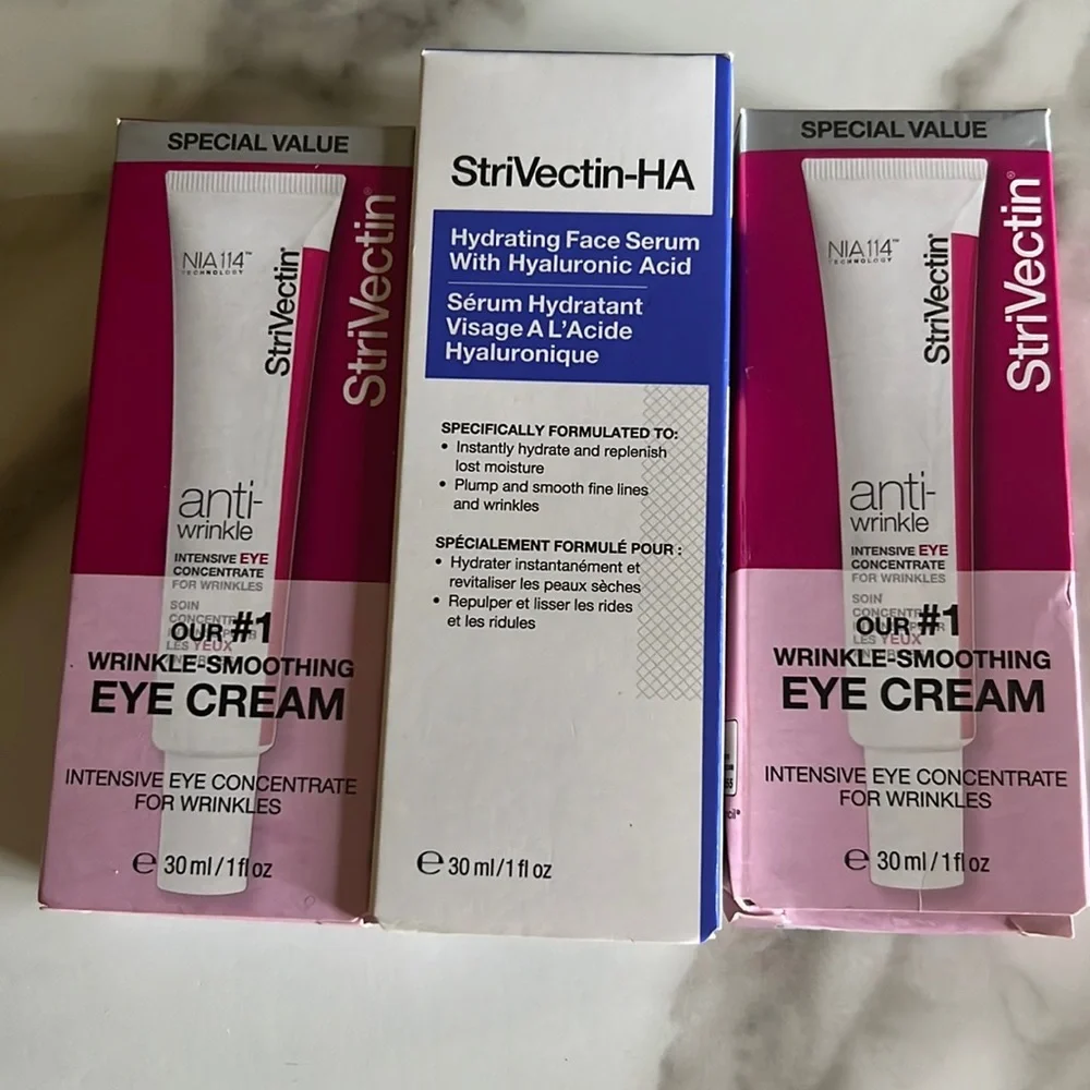 This brand's eye cream and serum are excellent for anti-wrinkle. This is new. The original price is $57. I sold these three for $25, all of which are brand new.