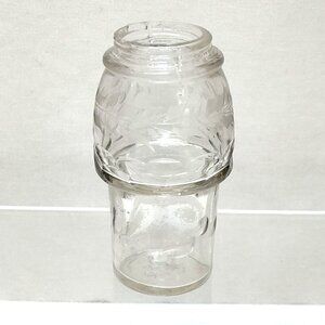 This intricately etched glass piece serves as a replacement for antique condiment castor sets. Its floral design and subtle craftsmanship evoke timeless elegance, making it a vital addition for collectors aiming to restore the charm of their vintage dining sets or heirloom pieces.