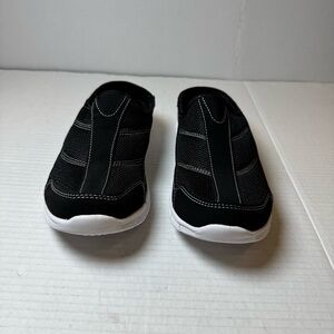 Stylish and comfortable black slip-on shoes perfect for everyday wear. Designed for a sleek look and easy fit. NWOTs