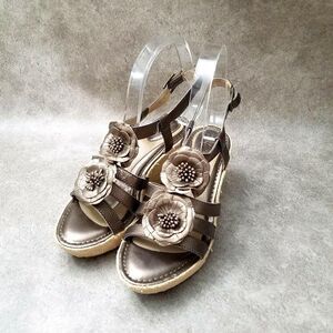 Strictly Comfort Womens F14617 Sz 6.5 M Brown Strappy 3.5" Wedge Sandals Flower