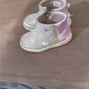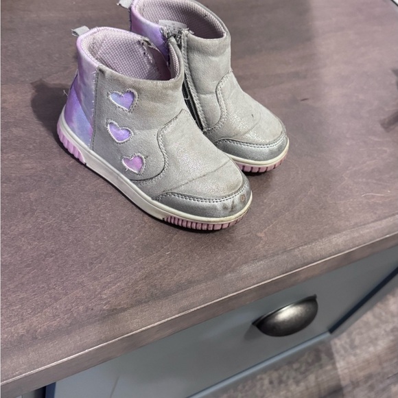 These stylish kids shoes feature a charming gray and purple design, perfect for any little one's wardrobe. Comfortable and durable, they are ideal for everyday adventures.