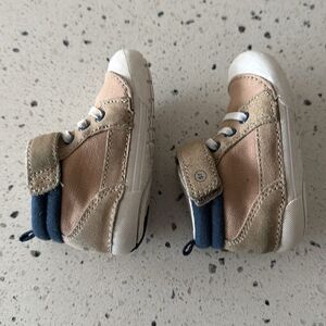 Stride Rite Danny Boy’s Ankle Booties Leather Textile Light Tan Shoes Baby 3.5M