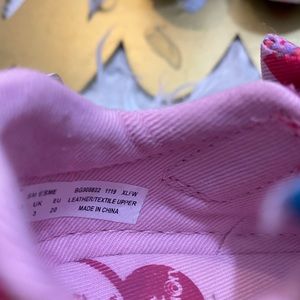 Leather upper hot pink with multi color bow. These are gently worn. There are two pair