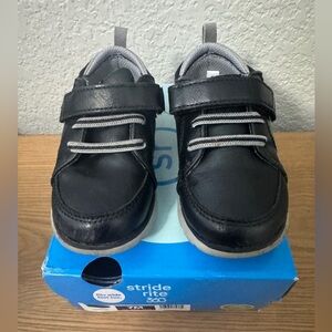 Gently worn Stride Rite Ethan Shoe in Black. Size 7M. Barely worn. A few little scuffs on toe area. Great condition. Adorable.