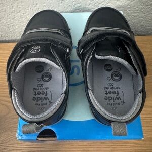 Gently worn Stride Rite Ethan Shoe in Black. Size 7M. Barely worn. A few little scuffs on toe area. Great condition. Adorable.