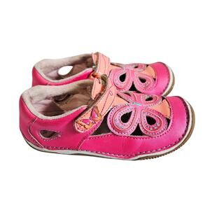 Stride Rite Girls 10M Baby Walker Shoe Pink Floral Butterfly Cutout Soft Motion