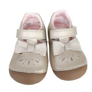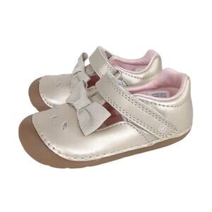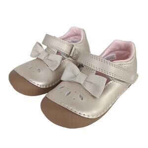 Stride Rite Janna MaryJane Dress Shoes Gold Glitter Bow Dress Flats Toddler 6