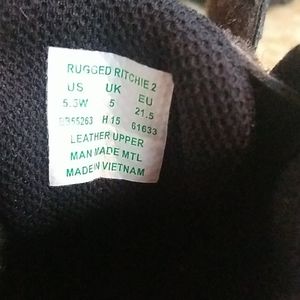 Like new Stride Rite Rugged Ritchie 2 boot, size 5.5W. We love these little hiking boots! My boys have had them in various sizes, since they are a wonderful boot. They are comfortable with amazing tread and a leather upper with a reinforced toe for durability. These boots are a great first hiking boot for an early walker!