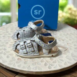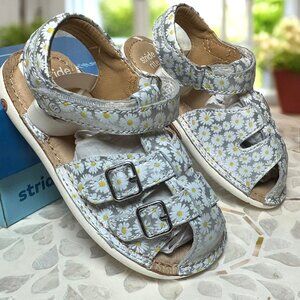 stride rite sandals, srt reign, toddler sandals, little kid sandals, girls sandals, silver sandals, daisy print, floral sandals, memory foam, adjustable straps, closed toe sandals, buckle sandals, summer shoes, kids shoes, toddler shoes, toddler size 7, size 7m, cushioned footbed, comfort sandals, toddler girl, kids footwear, everyday shoes, play shoes, dress sandals, floral print