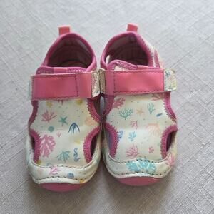 Stride Rite Splash Sandals size 5W. white and pink with under the sea print. In very good condition.