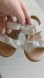 Charming white kids sandals featuring a cute bow design. Perfect for any occasion, these sandals offer both style and comfort. Worn once to match toddler flowers girl dress.