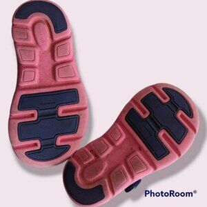 #StrideRite #phibian #sneaker #sandals in dark #purple with bright #pink details. We LOVE these shoes for the #summer and water play! Lightweight and so comfy with a great grip, they're everything you need this summer. These are in play condition for the condition of the pink edging that's almost worn off around the tongue and the size tag that's gotten rubbed off. But it's all purely cosmetic. There's no structural damage to these. Size is 8M