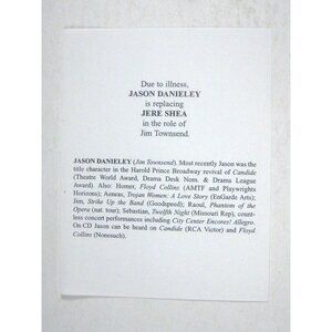 Comes with insert with role change Jere Shea and the role of Jim Townsend.