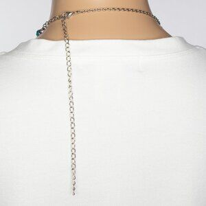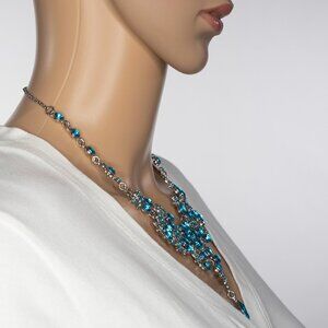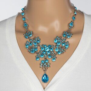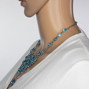 Striking Faux Blue Crystal Faux Silver Necklace With Faux Blue Drop
