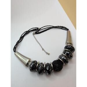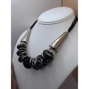 This necklace offers a classic yet contemporary feel. The interplay of the dark black and shiny silver creates a sophisticated look that's both timeless and on-trend. The chunky bead style is currently popular, allowing you to embrace a fashionable silhouette with a touch of vintage charm.