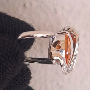 Striking Zircon Ring with transparent oval crystal stone Orange 925 Silver Size 6